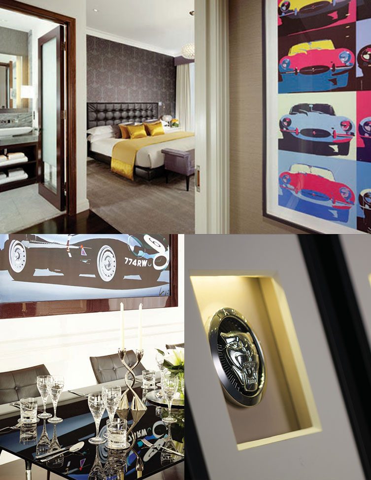 The signature Jaguar Suite — completed in October 2011 and located at the Taj 51 Buckingham Gate Suites and Residences, London — represents a fine example of synergy between two Tata companies, namely the Indian Hotels Company Ltd, and Jaguar Land Rover. The project was overseen by the then Jaguar design director Ian Callum as well as Chairman Emeritus Mr Ratan Tata who took personal interest in the project, attending meetings at the Jaguar headquarters in Coventry, UK.