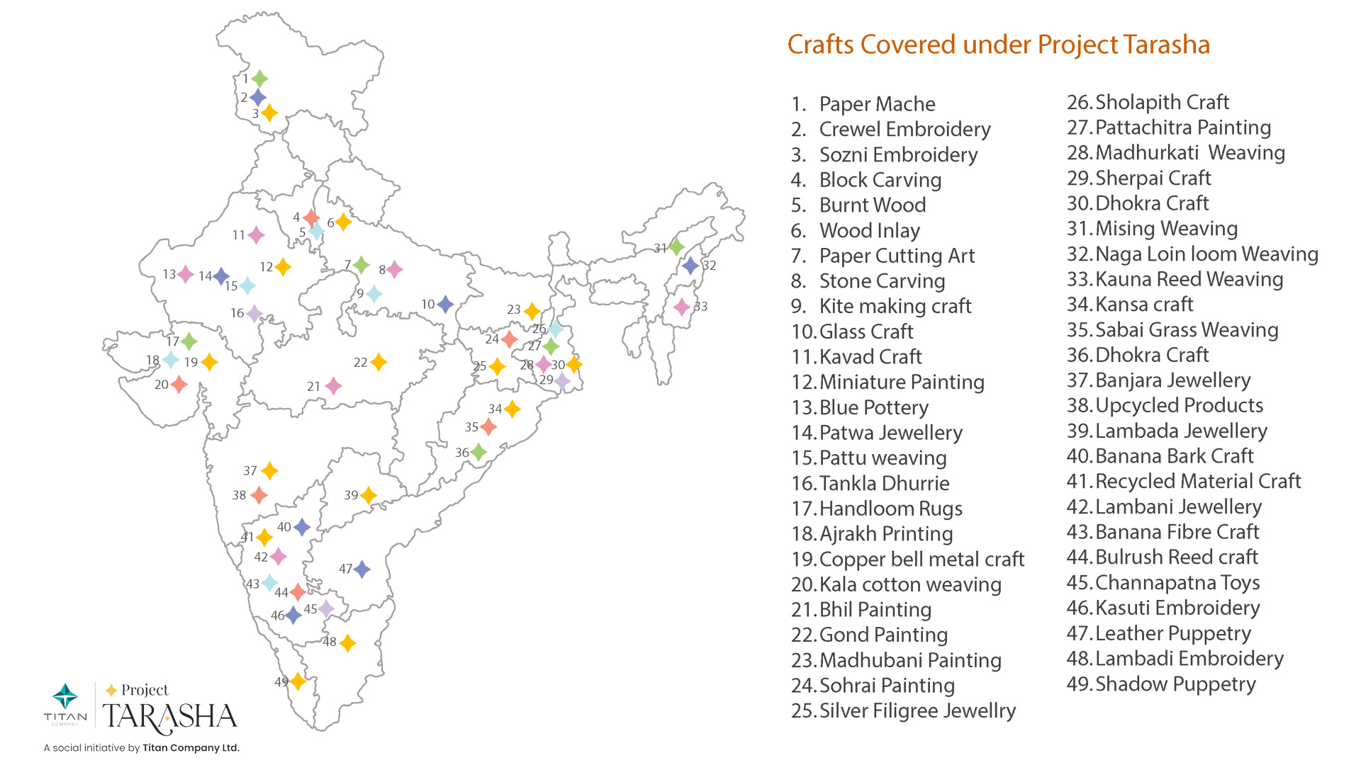 Tarasha (which translates to chiselled or carved) aligns with Titan’s commitment to sustainable livelihoods and inclusive growth by nurturing artisan entrepreneurs to become self-sustaining business leaders, thus fuelling a regenerative rural economy. It embodies Titan’s ESG pillars through equity and inclusion, by reaching aspirational districts, being women-led and promoting tribal crafts; transparency and democracy, which involves open-source knowledge sharing, artisan co-creation, and shared success; and lastly, environmental responsibility, by supporting sustainable materials and technology infusion for efficiency.